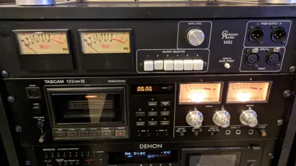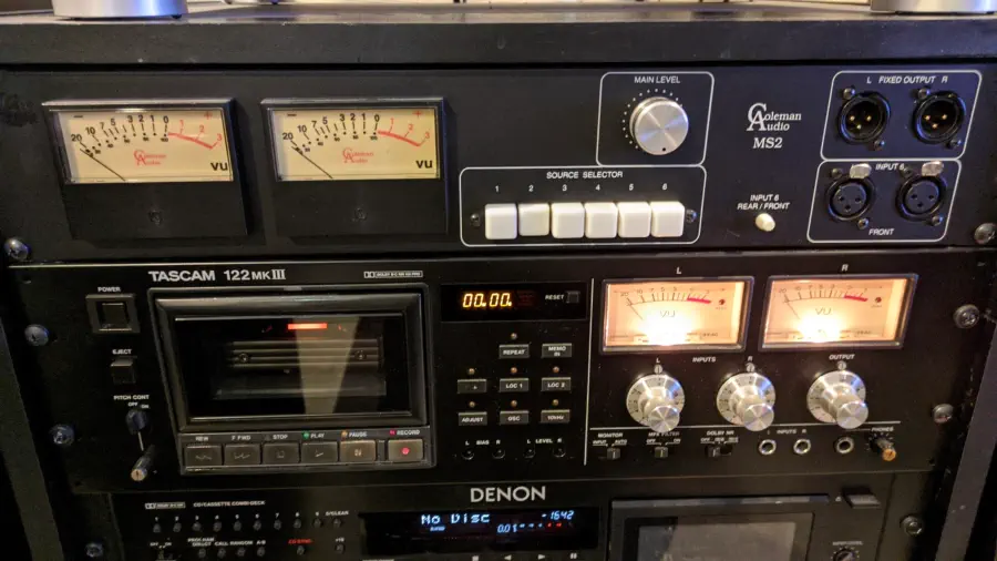 Coleman Audio MS2 analog router and VU meters, Tascam 122mkIII 3-head cassette deck